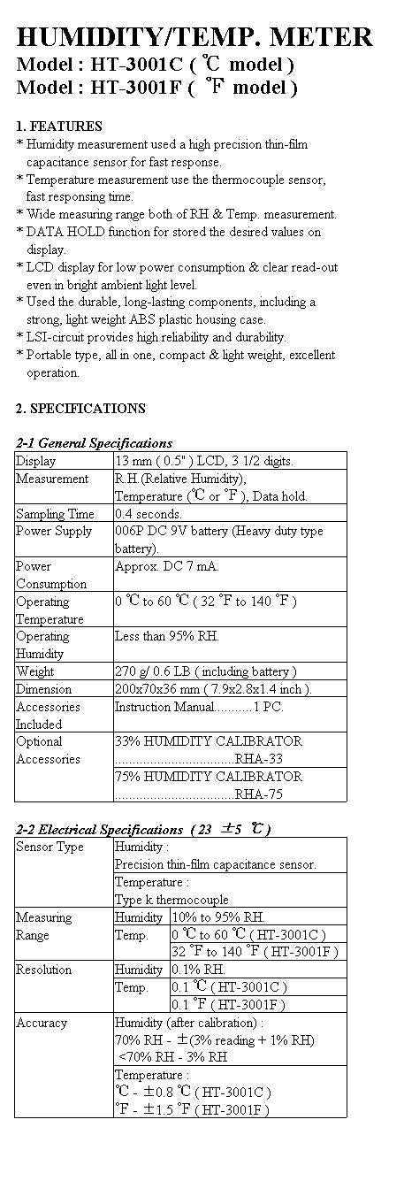 HT-3001 C/F - LÄMPÖ/KOSTEUSMITTARI