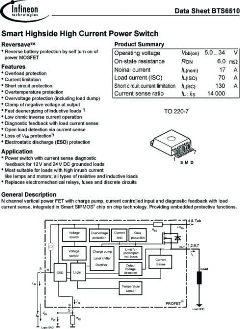 BTS6510B - SMD Profet IC SWITCH PWR HISIDE TO220-7 SMD