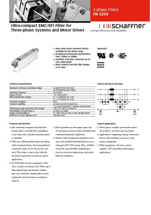 FN3258-745 - SCHAFFNER 3-phase filters 480Vac 7A