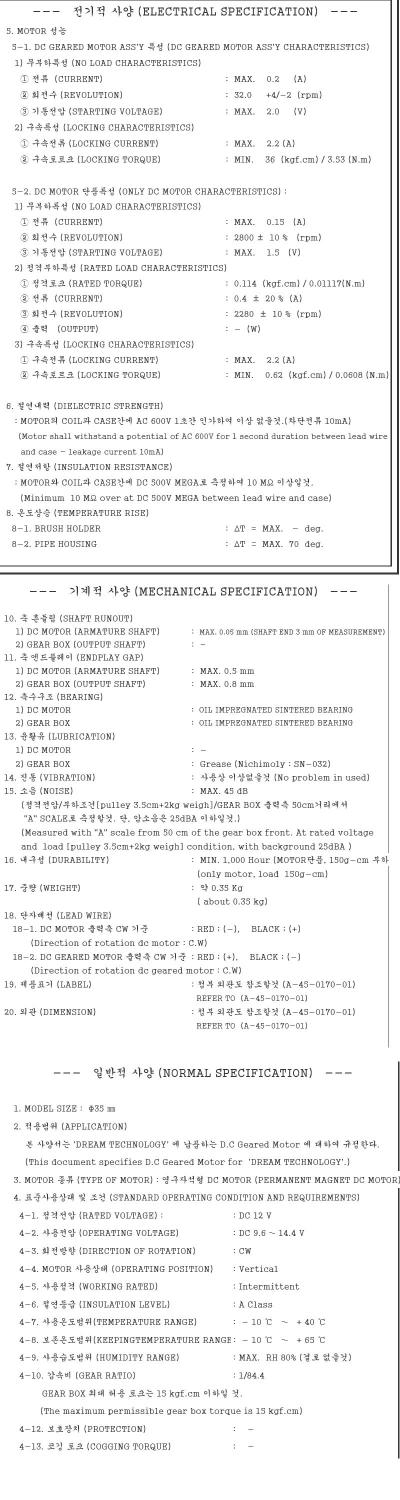 Technische Daten: - Betriebsspannung 3..12 V- - Stromaufnahme ca. 0,4 A - Drehzahl bei 3 V: 7,5 U/min, 6 V: 15 U/min, 12 V: 30 U/min 27 ---33 rpm ( 12VDC ) . Motormaße ohne Welle (Lxø): 52x36 mm, Getriebemaße: 91x56x22 mm, Welle (Lxø): 16x8 mm.