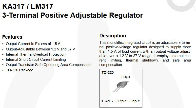 LM317/KA317 - Säädettävä 1,2..37V 1.5A TO-220